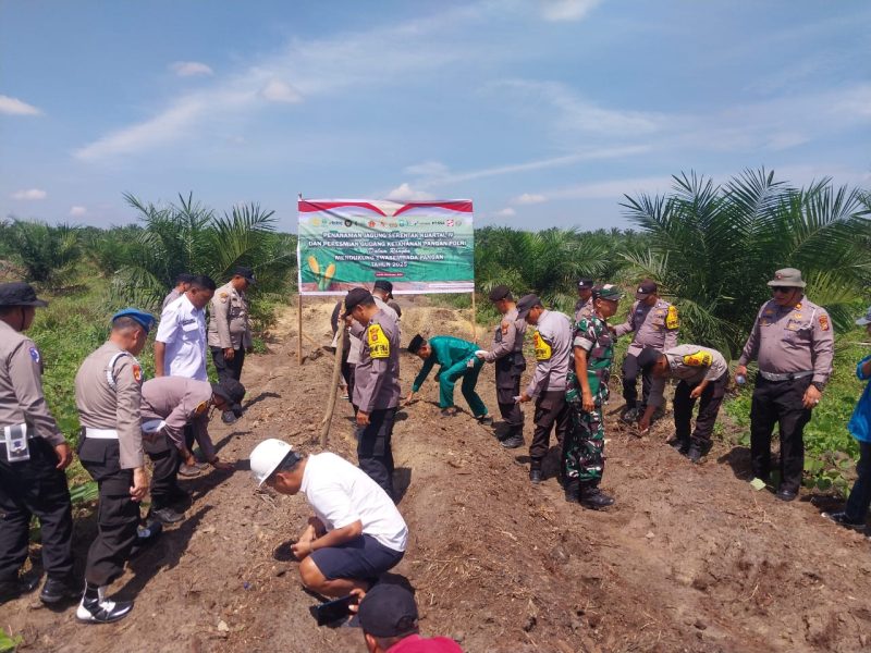 Siak – Timurnews.id//Dalam rangka mendukung Program Presiden Republik Indonesia tentang Ketahanan Pangan Nasional, jajaran Polsek Kandis bersama unsur pimpinan kecamatan (Upika) melaksanakan kegiatan penanaman jagung pipil kuartal IV seluas 10 hektar di area Kebun PSR PT. Ivo Mas Tunggal, Kampung Libo Jaya, Kecamatan Kandis, Kabupaten Siak, Rabu (8/10/2025).