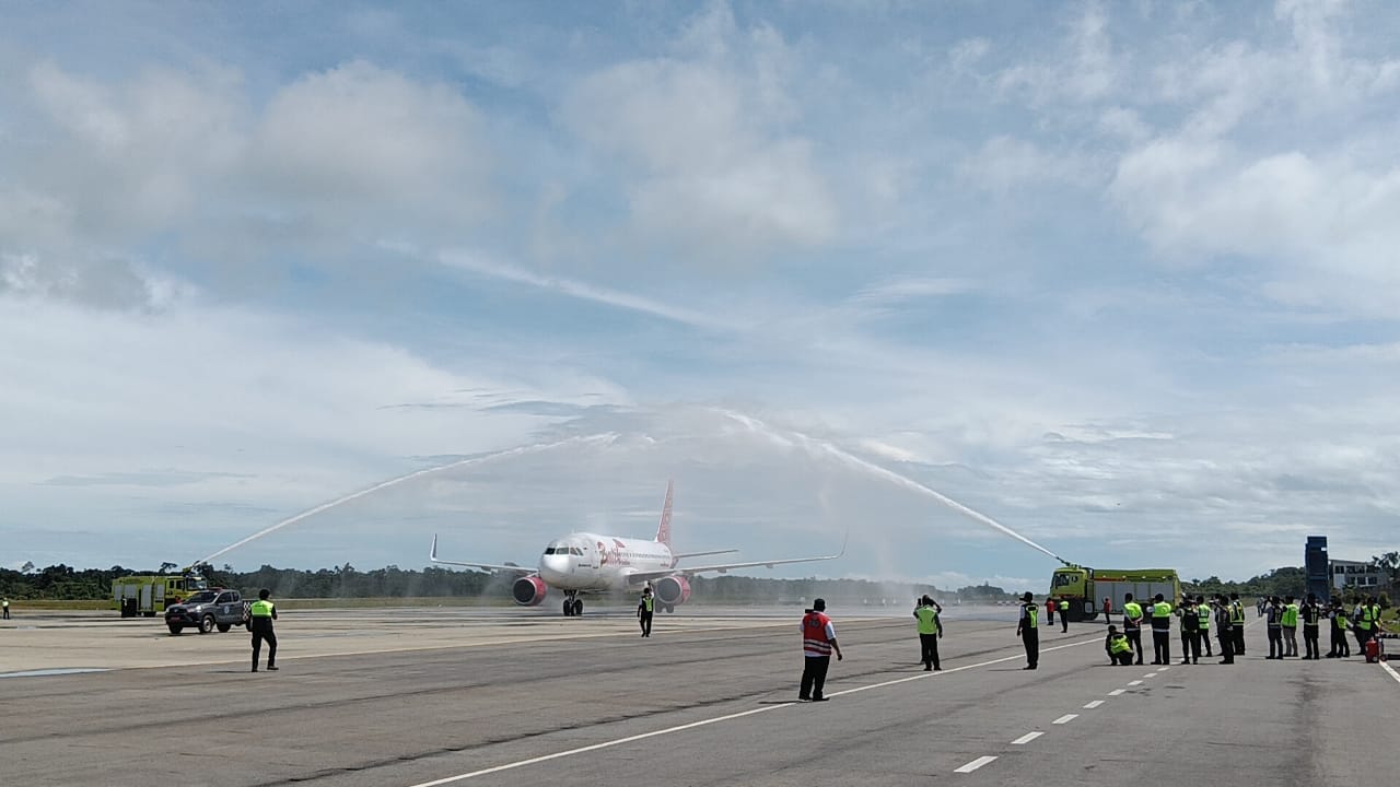 Nabire, TimurNews.id — Maskapai Batik Air dari Lion Group sukses melaksanakan penerbangan uji coba (proving flight) perdana di Bandar Udara Douw Aturure Nabire, Papua Tengah, Kamis (17/7/2025). Pesawat Airbus A320 mendarat pukul 10.37 WIT dari Bandara Moses Kilangin Timika dan disambut dengan water salute serta tarian adat Papua.