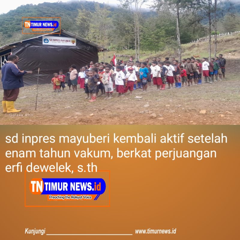 TIMURNEWS.ID – PUNCAK – PAPUA TENGAH – 8 Oktober 2025 – Setelah enam tahun terhenti akibat konflik berkepanjangan, aktivitas belajar mengajar di SD Inpres Mayuberi, Distrik Ilaga Utara, Kabupaten Puncak, kembali berjalan. Kebangkitan sekolah ini tak lepas dari semangat dan perjuangan Erfi Dewelek, S.Th, bersama rekan-rekan guru dan masyarakat setempat.