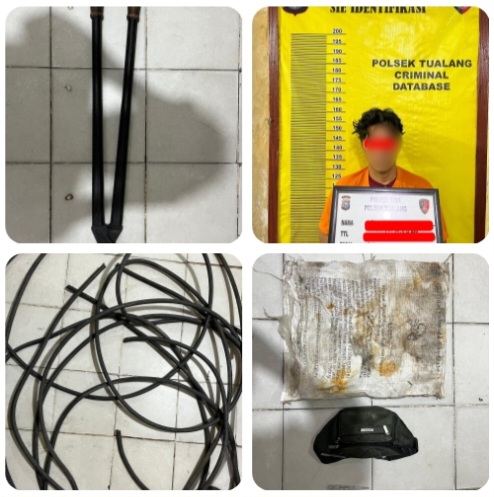 Dari tangan pelaku, petugas mengamankan barang bukti berupa tiga gulung kabel tembaga, satu tang potong, satu obeng tespen, satu karung plastik putih, dan satu tas pinggang warna hijau. Akibat kejadian tersebut, pihak perusahaan mengalami kerugian sekitar Rp4,2 juta.