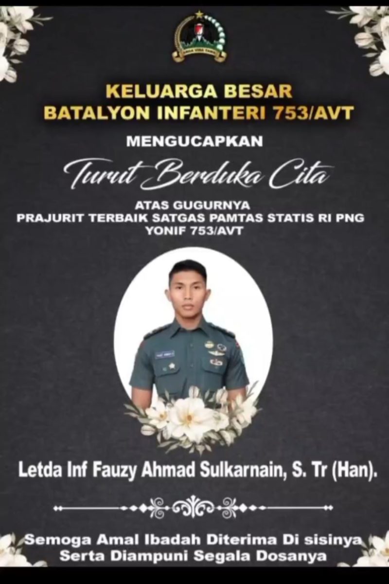Dalam peristiwa tersebut, seorang perwira TNI bernama Letda Fauzy A. Sulkarnaen, S.Tr (Han) dilaporkan gugur tertembak saat menjalankan tugas pengamanan perbatasan.